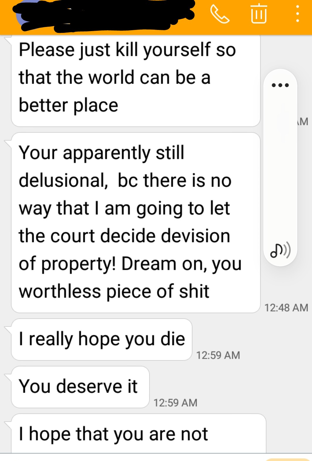 GUILTY OF (DV) ABUSING ME & I COUNT VICTIM’S IMPACT STATEMENT Effects of the Crime & Recommendations for Sentencing The crime for which the defendant was sentenced affected me psychologically, mentally, emotionally, and financially. The physical injuries from this event have healed, but the fear and the injuries done to me psychologically still remain. I had to leave my home in fear of the defendant killing me. He began to threaten me on a daily basis during the pandemic and made it quite evident that night of the crime that it would be soon. The event presented in court only shows a sliver of time of abuse. I was abused for seven years. It began as control statements and shaming words. Eventually, he would become violent towards objects giving me threatening looks. Violence towards me would happen within time. My world became a place of entrapment. While on the outside, he would protest that I should leave, yet he would make it nearly impossible on the inside. Smear campaigns developed out of nowhere, I had no one to confide in, and the relationships were dismantled as he threatened divorce if I spoke to some of my friends. I was constantly being gaslighted while he projected his mental health issues onto me. Sometimes running down the stairs, he would go into a rage with his eyes black, yelling at me that I was crazy. I had to leave the next day after this event immediately. The defendant had the desire and said to me at one point that he wanted to strangle me slowly and watch me die slowly and suffer slowly, and watching me die would give him so much joy. Because he was aiming for my neck with his hands more often, it was highly advised to leave. I had the help of this organization to get out of my home, a home where I lived, invested in, created and gardened. It was also home to our two dogs (officially the defendant’s). I still cry today over our dogs. I knew I would never see them again, and my heart has been torn into pieces ever since. I had to pack fast and leave. I stayed in a motel for 6 nights. Immediately after I left my home, the defendant tried to cancel my car insurance, which would have left me w/o a vehicle. The defendant also threatened to take me to court for abandonment. The smear campaigns surmounted on social media with insults, tormenting me with bullying tactics. There was only one side being presented, and given that he did this in such a calculative manner, I still had no one to confide in. These lies were insidious and incremental. Today, I still have anxiety and fear the gaslighting happening all over again. I was not like this before meeting the defendant. Eventually, I found a room to rent after bouncing from place to place. Given that I was a victim of domestic violence, my roommate did not want to be involved. I kept his name private for these reasons. Again, I had to pay out-of-pocket to leave a home that was also mine. While I endured emotional hardship, I also was paying the bills for the home I was not living in for 2-3 months while paying rent somewhere else. Living in survival mode for so long has taken its toll on me mentally and psychologically, and I am having bouts of depression with anxiety. The abuse put upon me was cruel and unbelievable. His cruelty towards me has resulted in PTSD/CPTSD and trauma bonding. For the last year before I left, the defendant would run down the stairs and start yelling at me to “DIE!” Then, he would circle around me until I was on the floor sobbing, yelling, “you don’t deserve to live, you should die, you don’t deserve to breathe, kill yourself and make the world a better place!” I am very aware of what this man is capable of doing and who is being manipulated. He was capable of premeditating a crime, covering me with blankets and hitting me with a pillow to the point it would burn so that he would not leave marks. He insidiously changed colors on me, saying green was blue, blue was green, orange was brown, and so on so that I would lose my confidence and have others validate that I was mentally unstable. He eventually started to claim left was right, right was left. I have had to go to therapy for this. He would yell at me while I was working on essays for grad school to the point that my head would go sideways while I was typing, not moving in fear of being hit. Spit would fly into my ear, and then he would yell at me because it took me so long to finish my paper. I had to type while being abused. There is so much for me to relive in this statement and so much I have endured throughout our marriage. It is not just the crime that happened on the event in question, but incremental abuse that ensnared my mind. And, how dare someone do this to another human being: To tell someone to kill themselves over and over again, to smash their spiritual belongings in front of them into the carpet, to isolate them by spreading lies, to hurl things into walls near their head, to manipulate their mind into thinking they were crazy, to physically abuse them when they refused to sleep underneath “dog sheets” while staying in an Air B&B, to make them go to the bathroom in a bucket stating “no one” needed plumbing, and to chase them out of the garage, threatening them with board with protruding rusty nails. I lived in fear of the defendant murdering me in my sleep and still wake in the middle of the night in a panic. Had I not had to leave Colorado for cancer treatment, I would have had this statement beforehand. [Text is from one of hundreds sent within a 24-hour period] It was in response to being served divorce papers after being rescued. I had barricaded myself in the bedroom the night before while he stabbed the door with a screwdriver. An organization found shelter for me the next day.